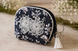 Zippered Rosary Case with Lace Flower Appliqué, Silver Cross & Tassel – 4.5” x 3.5”